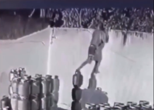 Nas imagens, o suspeito aparece empilhando diversos botijões de gás, um sobre o outro, criando uma espécie de escada improvisada para conseguir acessar o topo do muro do local.