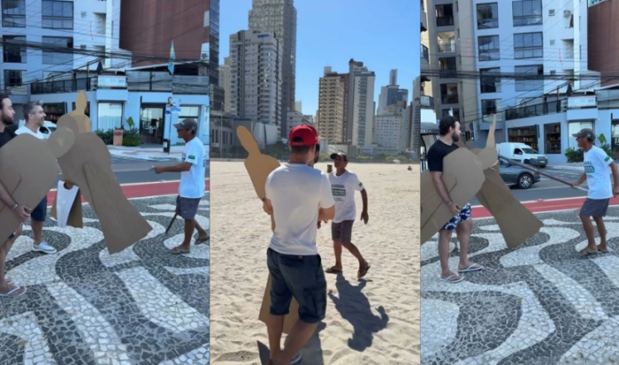 Um início de debate político terminou em um bate-boca acalorado na tarde desta sexta-feira (9), na Praia Central de Balneário Camboriú (SC). Um grupo de influenciadores digitais montou uma estrutura com totens em tamanho real do presidente Lula, do ex-presidente Jair Bolsonaro e do ministro Alexandre de Moraes, com o objetivo de gravar conteúdos de provocação e debate com transeuntes.