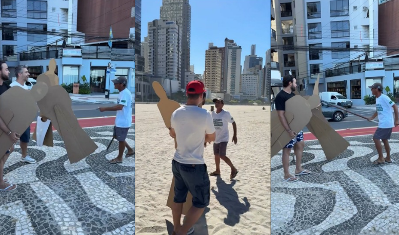 A ação, no entanto, gerou revolta em um quiosqueiro local, dando início a uma discussão tensa que parou a orla. Imagens registradas por turistas mostram o momento em que os ânimos se exaltam entre os criadores de conteúdo e o comerciante. A confusão atraiu uma multidão de curiosos e só não evoluiu para agressões físicas mais graves devido à intervenção de pessoas que passavam pelo local e conseguiram separar os envolvidos. Até o fechamento desta matéria, não houve registro de boletim de ocorrência.