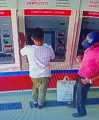 De acordo com as imagens, o suspeito se aproxima da vítima, que apresentava dificuldades para operar o caixa eletrônico, e se oferece para ajudar. Durante a ação, ele simula problemas com a operação, enquanto digita valores e realiza o saque.