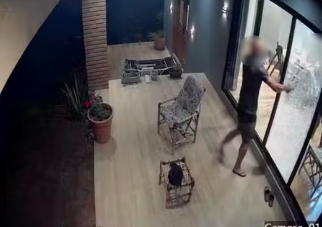 Imagens de câmera de monitoramento registraram a violência. As gravações mostram o suspeito chegando ao imóvel, quebrando a porta de vidro e entrando na residência empunhando a arma branca, em perseguição ao vizinho. Dentro da casa, uma mulher e uma criança aparecem fugindo imediatamente após a invasão.