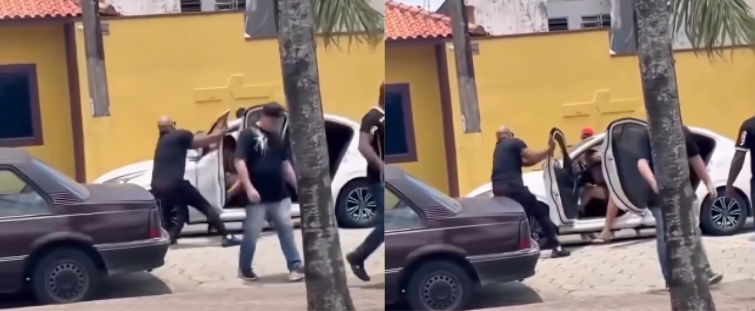 De acordo com relatos, um homem, aparentemente alterado, tentou arrancar à força as portas de um carro onde estavam um casal. Diante da situação, os ocupantes do veículo não reagiram e, sem saber como agir, decidiram deixar o local, saindo com o carro ainda com as portas abertas.