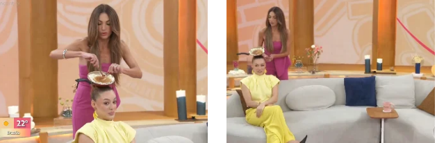 Bia surgiu nos estúdios da Globo ostentando um look vibrante todo amarelo, mas o que roubou a cena foi o acessório de cabeça: uma tiara de panqueca. A escolha foi uma referência direta a uma fala de Gabi que viralizou nas redes sociais nos últimos dias.