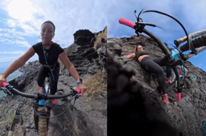 Vídeo: Influenciadora registra queda durante pedal em trilha à beira de penhasco na Espanha