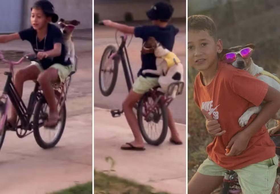 Morador de Combinado, no Tocantins, João Lucas foi flagrado em um momento de pura alegria e habilidade: empinando sua bicicleta com a fiel companheira na garupa. E Mel não é uma passageira comum. De óculos e roupinha, a vira-lata se equilibra com uma tranquilidade impressionante enquanto o menino demonstra sua perícia no “grau”.