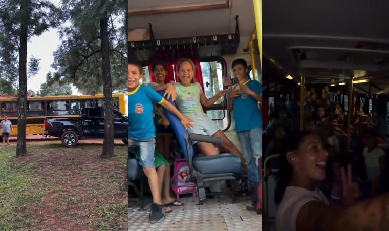 O encontro aconteceu de forma espontânea quando um ônibus escolar — que realiza o transporte dos filhos de funcionários da propriedade e de vizinhos até a escola — parou no local. Ao saber da presença dos pequenos, Ana não pensou duas vezes: foi até o veículo para cumprimentar seus “mini fãs”.