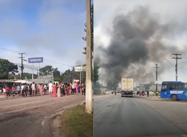 Moradores interditaram a BR-316 na manhã desta terça-feira (24), em frente à entrada do bairro Canaã, no município de Marituba, na Região Metropolitana de Belém.