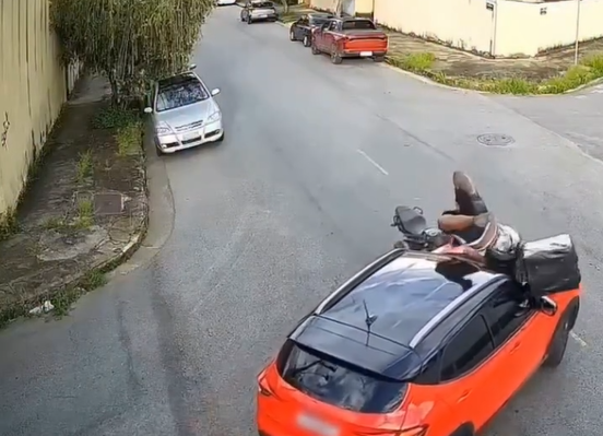 Vídeo: Motociclista é arremessado após colisão com carro em via preferencial