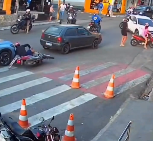 Durante a perseguição, ocorre ainda um acidente, mas, mesmo assim, algumas pessoas tentam deixar o local, reforçando o cenário de desordem registrado no vídeo.
