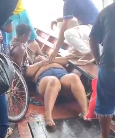 De acordo com informações, ela estava em uma embarcação do tipo “rabeta” quando acabou indo parar na água.
