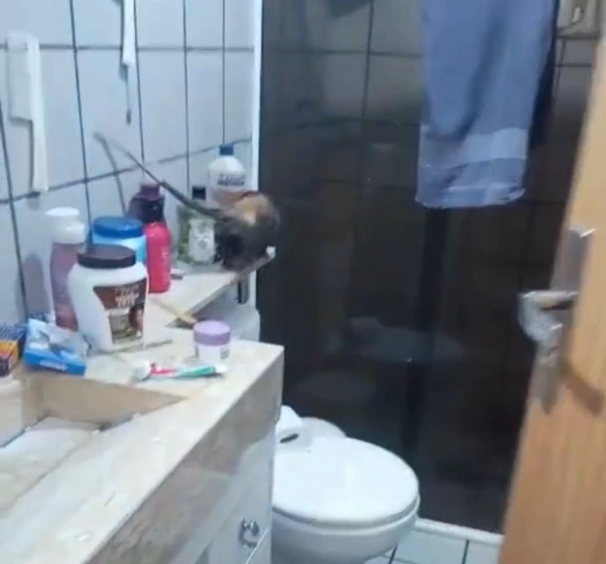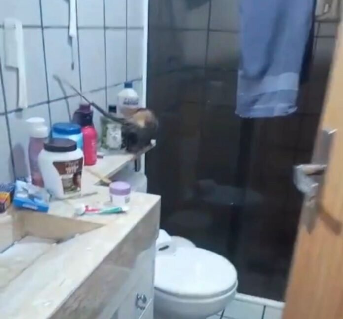 Vídeo: Mulher encontra dupla de saruês no banheiro de casa em Macaé