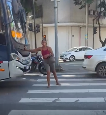 Vídeo: Mulher impede saída de ônibus após não conseguir embarcar em Santa Efigênia