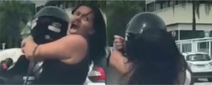 Imagens registradas por testemunhas mostram uma passageira gritando por socorro enquanto aplica um golpe conhecido como “mata-leão” no condutor da motocicleta, em plena via de tráfego intenso.