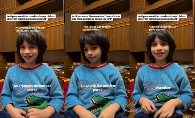 A cada frase interrompida, o menino trazia uma continuidade cheia de doçura. Ele não completava com a dor que muitos adultos ainda carregam na memória; ele completava com a realidade que vive hoje. Suas respostas, carregadas de empatia e cuidado, mostraram que, para ele, o erro não é motivo de castigo, mas de aprendizado, e que o amor não precisa ser provado através da obediência cega.
