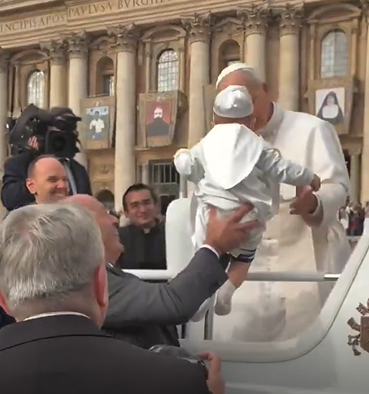 Vídeo: Papa interrompe desfile para abençoar bebê vestido de pontífice