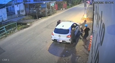 A ação criminosa foi registrada por câmeras de segurança. Nas imagens, é possível ver o momento em que o passageiro estava do lado de fora do veículo, conversando com o taxista, que permanecia dentro do carro.