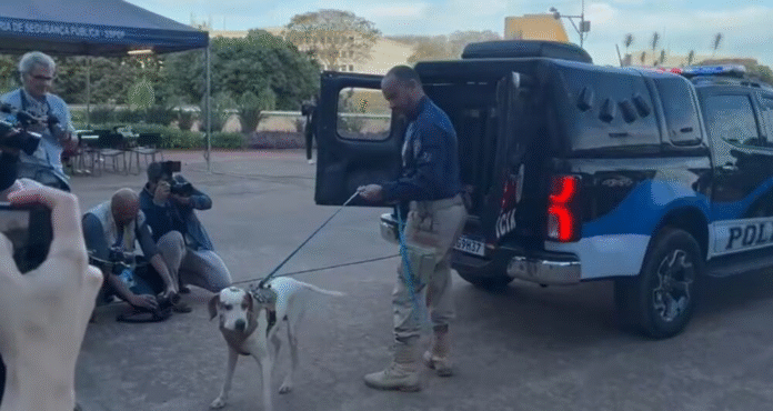 Nesta terça-feira (2), a Polícia do Senado utilizou cães farejadores para realizar uma varredura preventiva em frente ao prédio da Primeira Turma do Supremo Tribunal Federal (STF), conhecido como “igrejinha”.