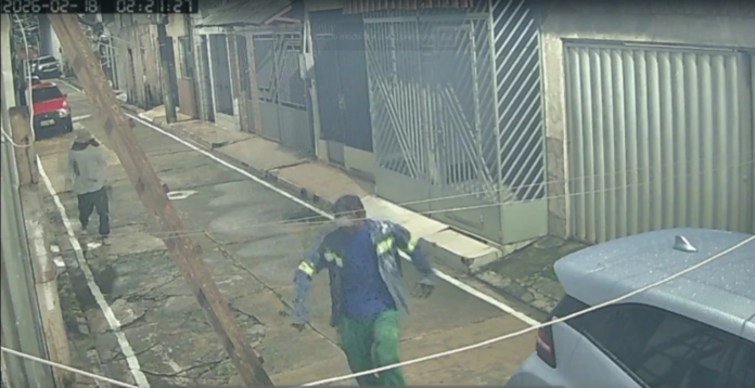 Uma câmera de segurança de uma das residências registrou o momento exato em que um dos suspeitos tentava forçar a entrada em um imóvel. As imagens já circulam em grupos de mensagens de vizinhos para ajudar na identificação.