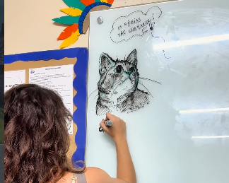Em Brasília, uma professora de Artes está redefinindo o conceito de “preparar a aula”. Mais do que organizar slides ou livros, ela utiliza os minutos que antecedem a chegada dos alunos para realizar uma performance silenciosa e encantadora: transformar a lousa em uma tela de exposição.