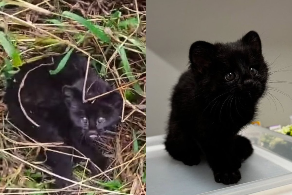 Um filhote de gato-do-mato-pequeno com uma condição genética rara, o melanismo, foi resgatado na segunda-feira (25) em uma plantação de bananas no bairro Santa Luzia, em Jaraguá do Sul, Santa Catarina.