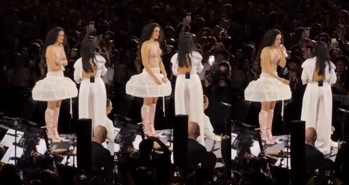 Pela primeira vez, as duas artistas apresentaram juntas ao vivo o hit “Memória”, canção que já é um sucesso nas plataformas digitais. A colaboração, que une o experimentalismo de Rosalía à profundidade do fado de Carminho, foi mantida sob sigilo até o momento da entrada da portuguesa, tornando-se a grande surpresa da apresentação.