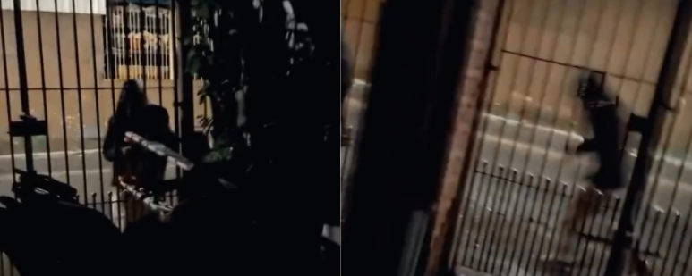 Uma moradora flagrou o momento em que um homem tentou invadir sua residência usando um alicate para cortar as grades do portão. Ao perceber uma escada de ferro, o suspeito tentou puxá-la.