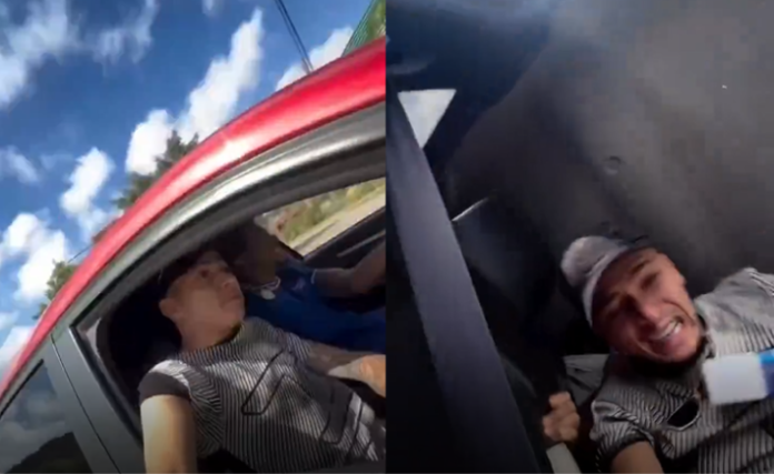 Durante a gravação, o condutor perdeu o controle do veículo, que acabou capotando.