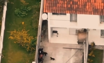 O animal avançou em direção ao traficante, cercando-o e impedindo qualquer chance de fuga pelo interior da propriedade. Desesperado, o homem correu de um lado para o outro no quintal, enquanto um policial se aproximava para efetuar a detenção.