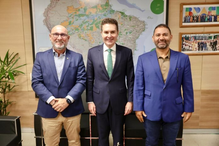 O prefeito Cristiano Vale e o ex-prefeito Neto foram recebidos no ministério das Cidades, em Brasília, pelo ministro Jader Filho para dar o pontapé inicial em um projeto pioneiro no Estado do Pará. Trata-se do novo Sistema de Abastecimento de Água Potável de Viseu. O sistema fará a captação da água do rio Gurupi, que passará por um moderno processo de tratamento e será entregue com qualidade e potável em todas as casas da sede do município.