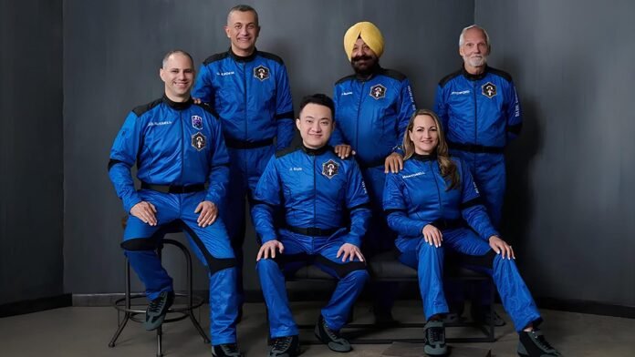 Entre os passageiros da missão NS-34 estava o bilionário chinês Justin Sun, de 34 anos, fundador e CEO da plataforma de blockchain Tron. Ele venceu um leilão promovido em 2021 para embarcar no primeiro voo turístico da Blue Origin, com um lance de US$28 milhões (cerca de R$155 milhões na cotação atual), mas um conflito de agenda impediu sua participação na ocasião.