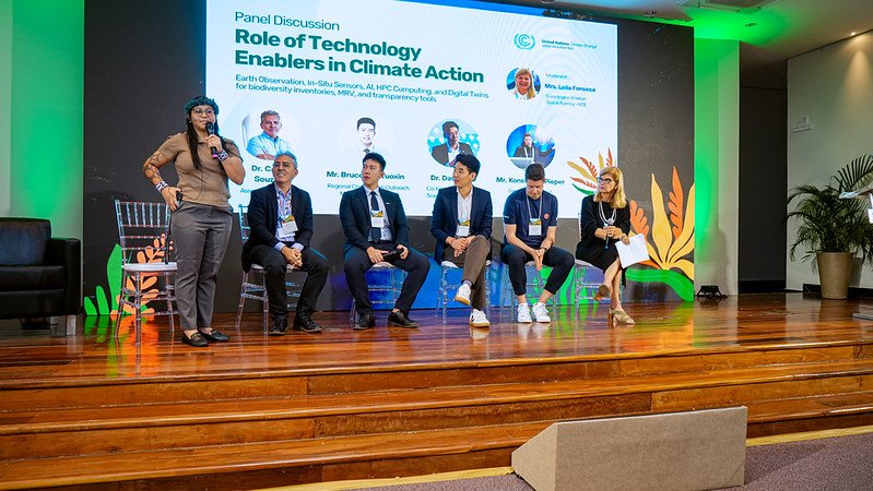 O segundo painel discutiu o papel de tecnologias como observação da Terra, sensores, IA, computação de alto desempenho e gêmeos digitais.