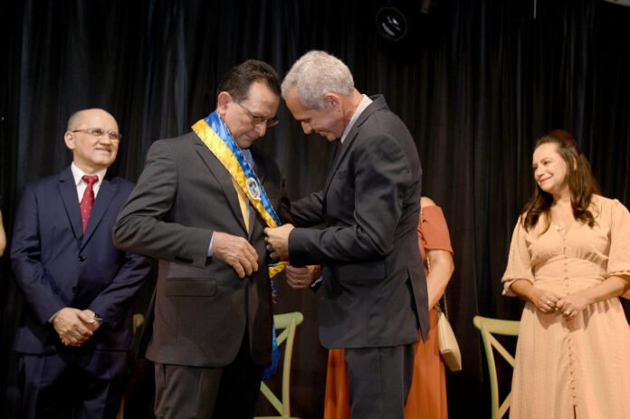 O ex-prefeito Nélio Aguiar entregou a faixa ao novo prefeito Zé Maria Tapajós, como símbolo de continuidade e responsabilidade.